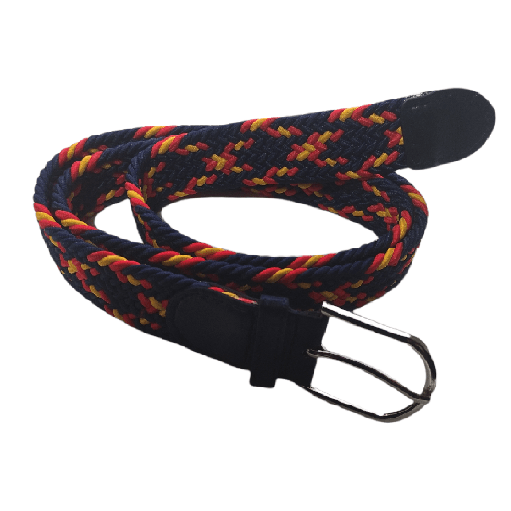 Cinturón trenzado elástico azul marino con la bandera de España.